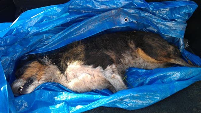 This undated photo, provided by the group Project Coyote, shows another pet killed by a body-gripping conibear trap.